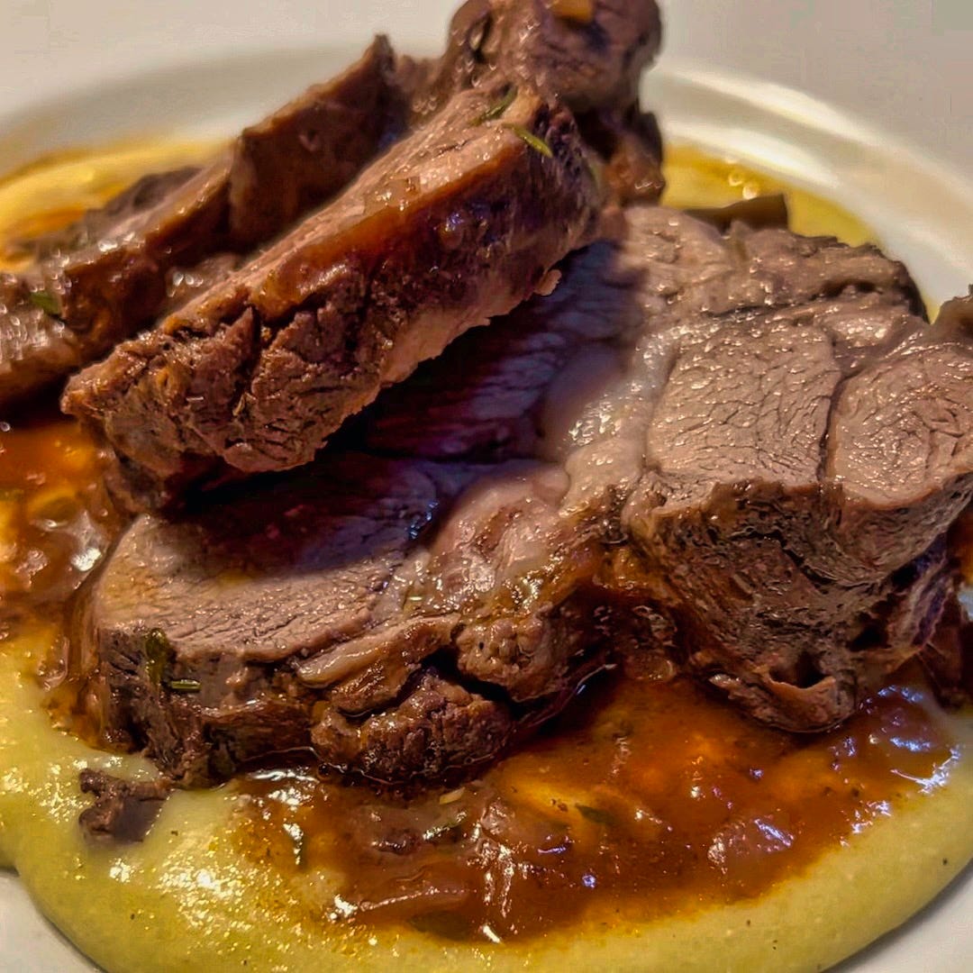 - Slice the lamb and serve it with the braising liquid and vegetables.