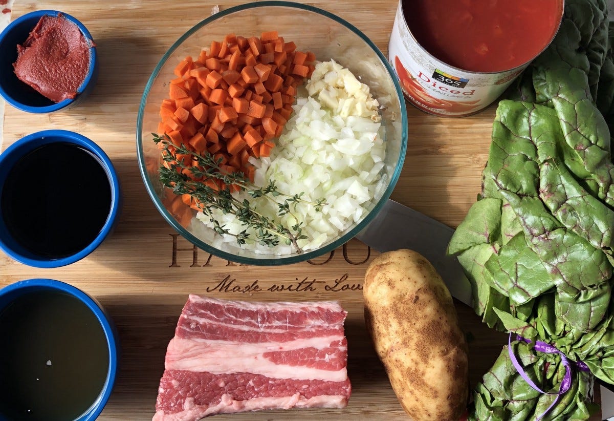 This recipe is for two, but you can increase the size by using more beef ribs, increasing the pot size, and adjusting the liquid to just cover the meat.