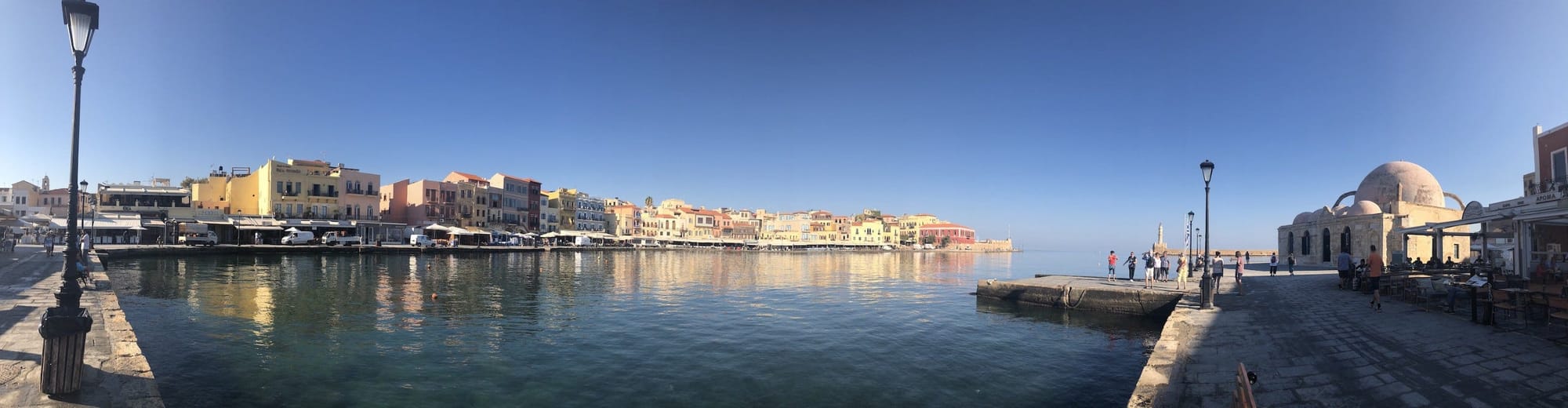 Rounding the fort at one side of the harbor entrance, Chania unfolded like a painted fan. The semi-circular port was lined with pastel Venetian buildings, their facades weathered by sun and sea. The waters shimmered in teal and sapphire. Here was a place both layered and singular: part Grecian, part Venetian, part Ottoman, and entirely Cretan.