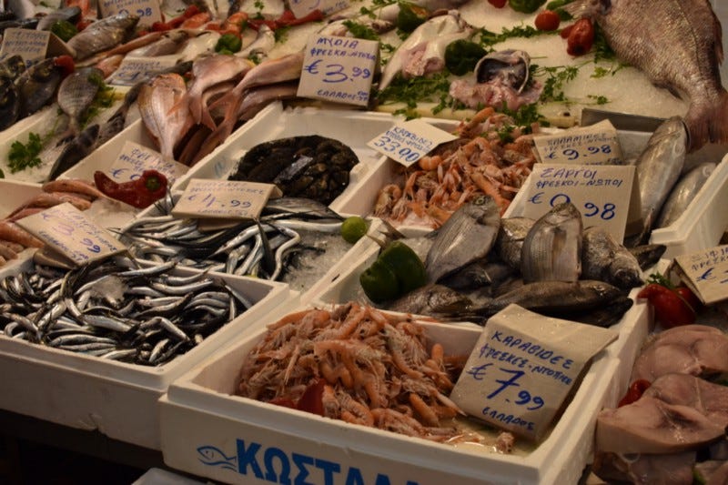 Athen’s market is no different. Not a lot of tourists find their way here. This is a place for locals and I am a bit of an interloper. The fishmongers, butchers, and produce people are nice, but they know that, if lucky, I’ll buy some olives or pistachios. There’s not a big tourist trade for the amazing array of seafood I am standing in front of. And yet, they still smile and engage in a bit of conversation about the different catches they have on display. We are on our way out of town this afternoon and I regret not coming the day before so that I could have bought the ingredients for a perfect Greek meal on the balcony looking out at the Acropolis.