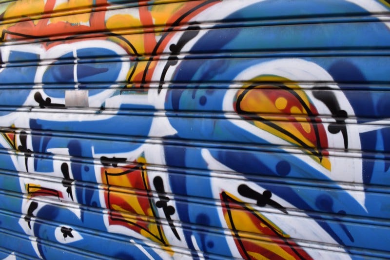 Monastiraki is bustling and vibrant and as you walk past the shops you overhear the negotiations between buyer and seller. Turning left down the street that leads to the Agora you are struck by the burst of color from the graffiti. There are few bare walls in the city. Any open wall or security gate is fair game for the street artist. The graffiti is raw and visceral and adds to, rather than subtracts from, the image of the city.