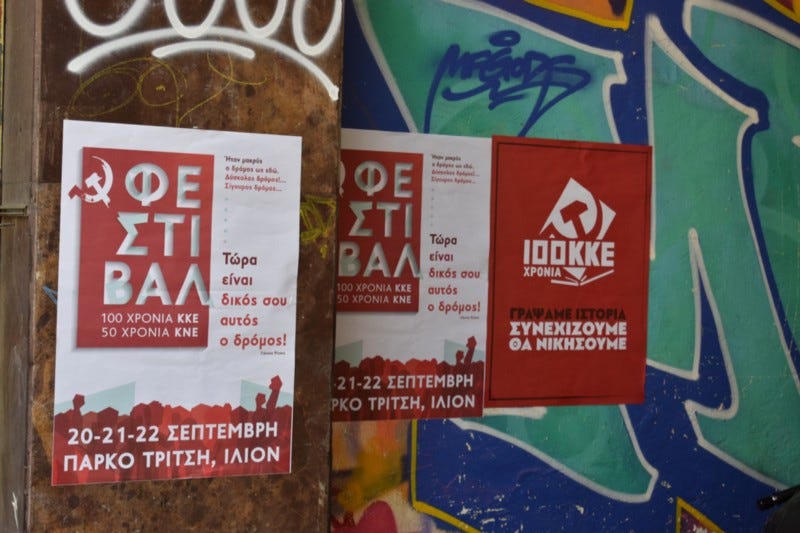 We leave the market area to look for a place to grab lunch. Here the walls have posters about upcoming Communist rallies layered on top of the graffiti. The city is that of a people who have witnessed glory and struggle. And everything in between. There is an attitude of the people that they have seen it all before and they will see it all again. Maybe they will. There is roughness around the edges. Protests that grow from deep in the Greek psyche that displays itself mostly in the form of graffiti and street art and also in the occasional demonstration. If anyone has the right to protest it should be the people who actually invented Democracy in the place where it was created. But mostly there is a joy. A spirit of life. An awareness of what is truly important in the world. And it is intoxicating.
