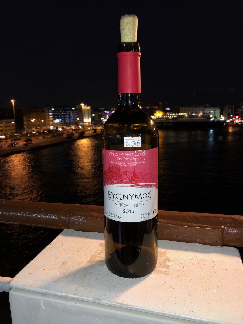 Uncorked and ready to go. Next stop, Crete.