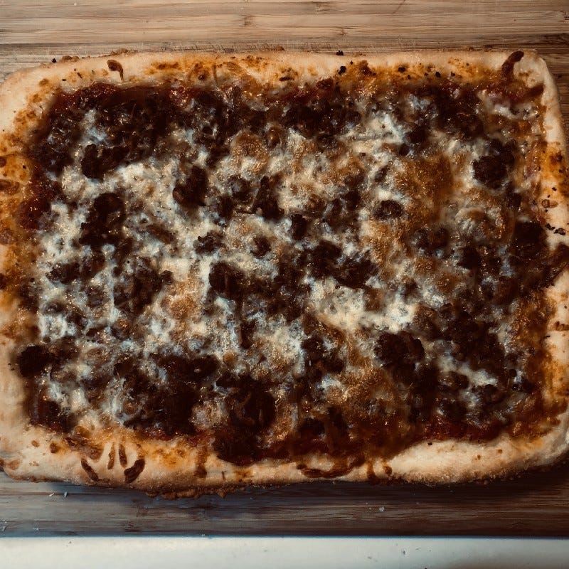 Then COVID-19 hit and the city went into self isolation. Trader Joe’s closed a few times and when they were open were understocked because of panic buying. And, at the same time, our local pizza place shut down due to a gas leak in the building. If we wanted to keep tradition alive, I would have to do what I should have been doing all along — make pizza from scratch. The recipe below has been perfected over the past thirteen weeks and is now in the permanent rotation. Instead of once every two months, it has earned a place at the table once every three weeks and has been Made With Love certified.