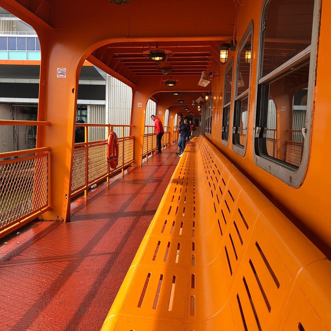 My final moment of whimsy for the day came as I was headed for the subway. After 8 miles I wasn’t about to do a return trip. I looked at my watch. It was just before the bottom of the hour. Just enough time to catch the Staten Island Ferry and get a close view of the Statue of Liberty and return to the amazing view of the skyline of lower Manhattan, the East River, and Brooklyn. An incredibly touristy thing to do, it is also one of my favorites. There is something I find romantic about the ferry, probably because I don’t have to take it every day.
