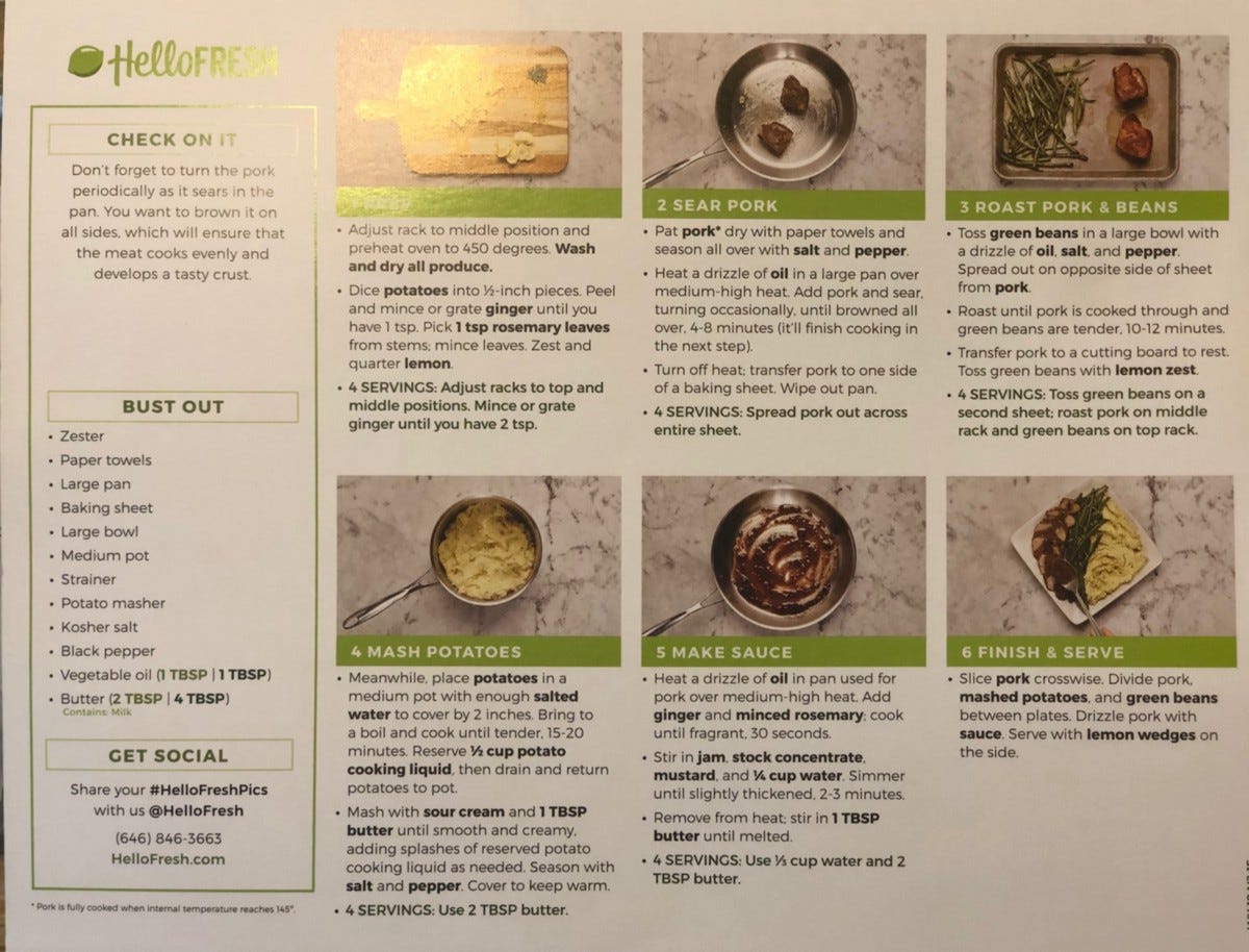 If this is the greatest thing since sliced bread, why am I leaving? Because of what I said at the beginning. These subscriptions are costly. And having cooked since I was put in charge of slicing shallots for my father’s Steak Diane, I know how to manage weekly menus and ingredients.